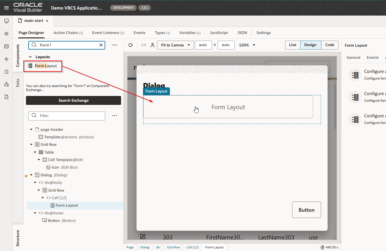 Drag and drop form Layout to dialog: