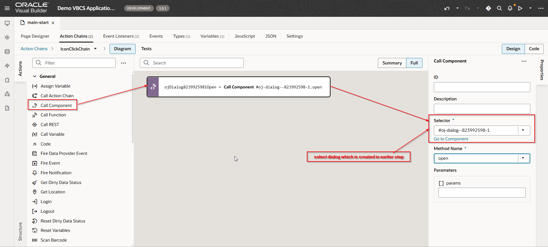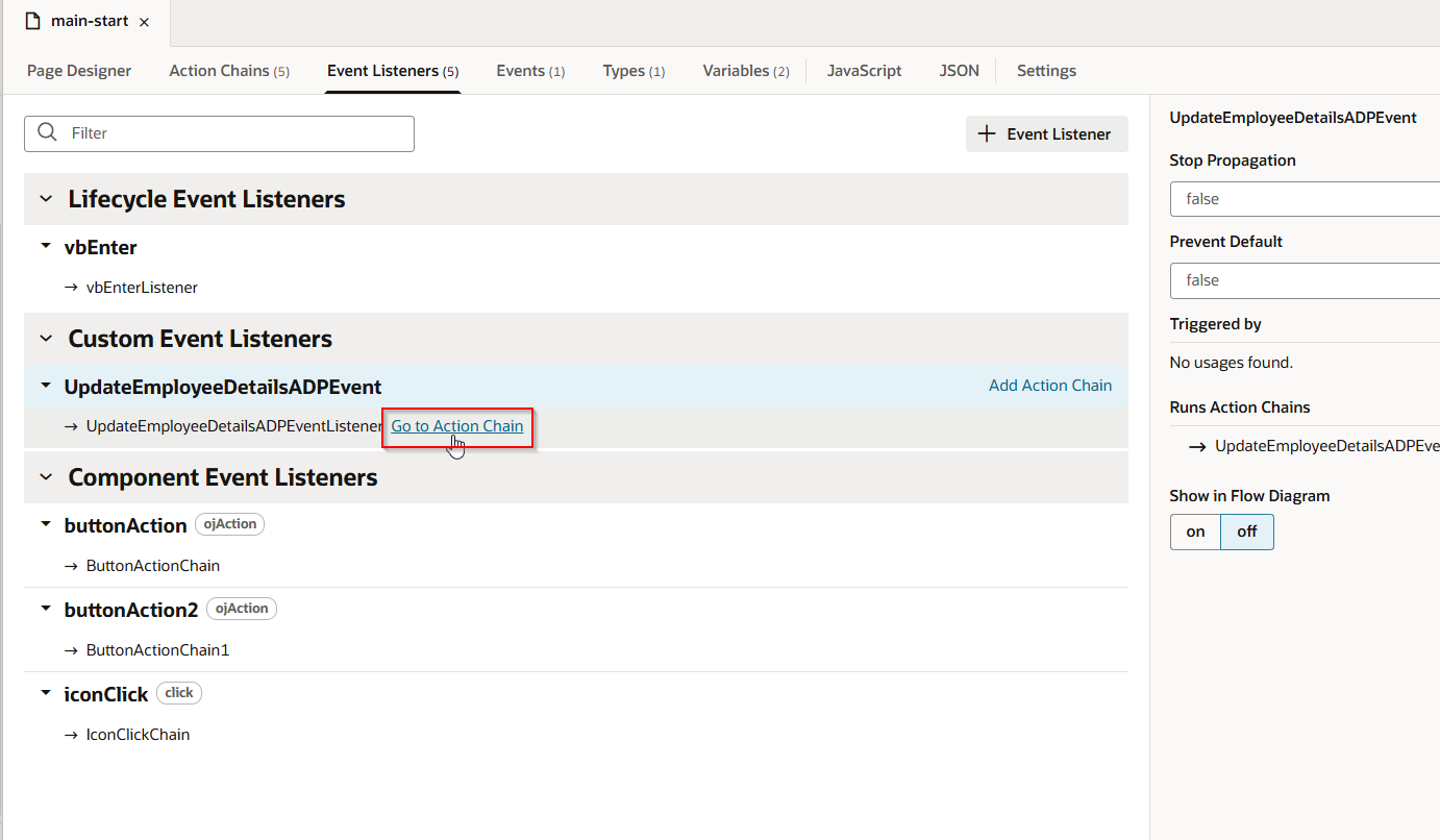 Navigate to action chain for Icon.