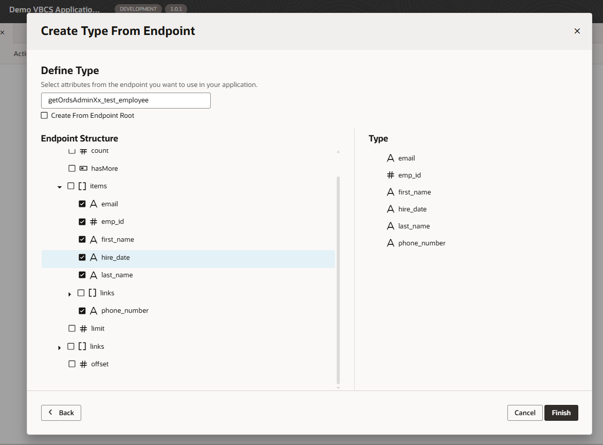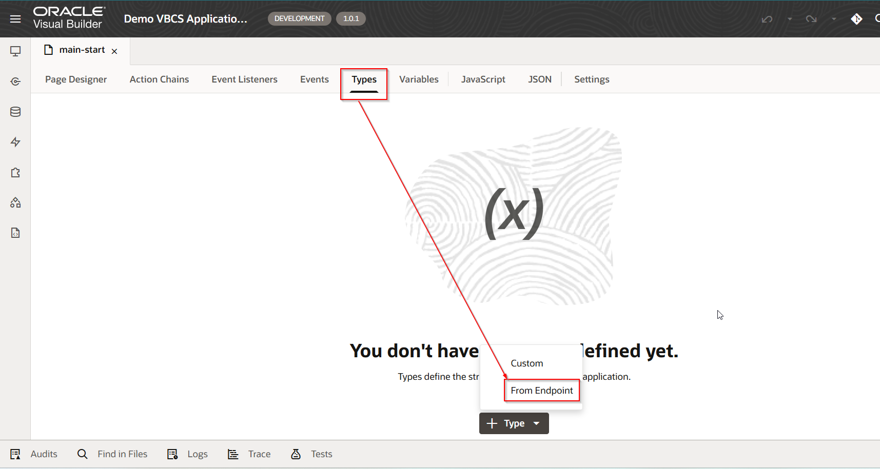 Navigate to Types—>Type —>From Endpoint