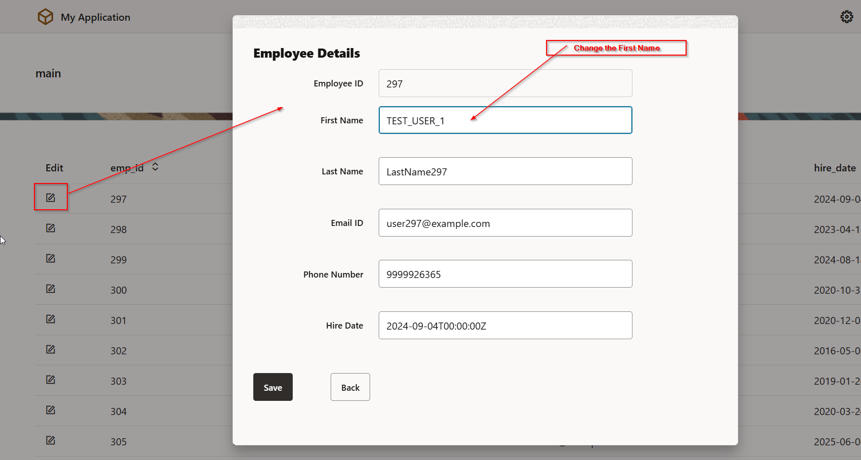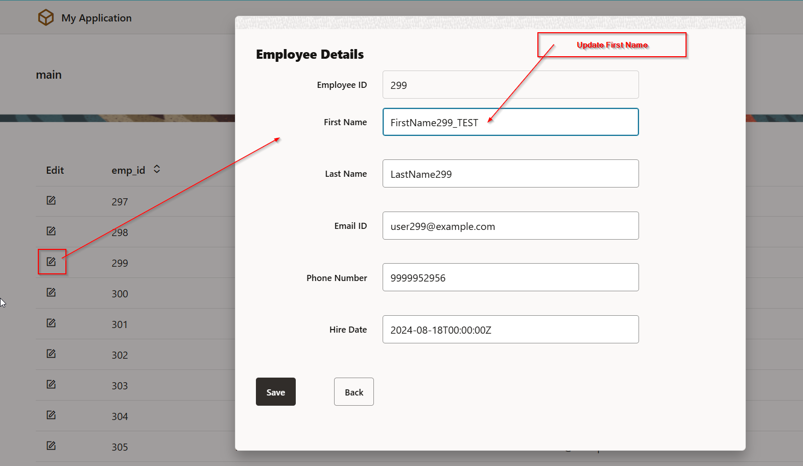 - Dialog box will be closed, and ADP variable (EmployeeDetailsADP) should be refreshed, and it should show updated records.