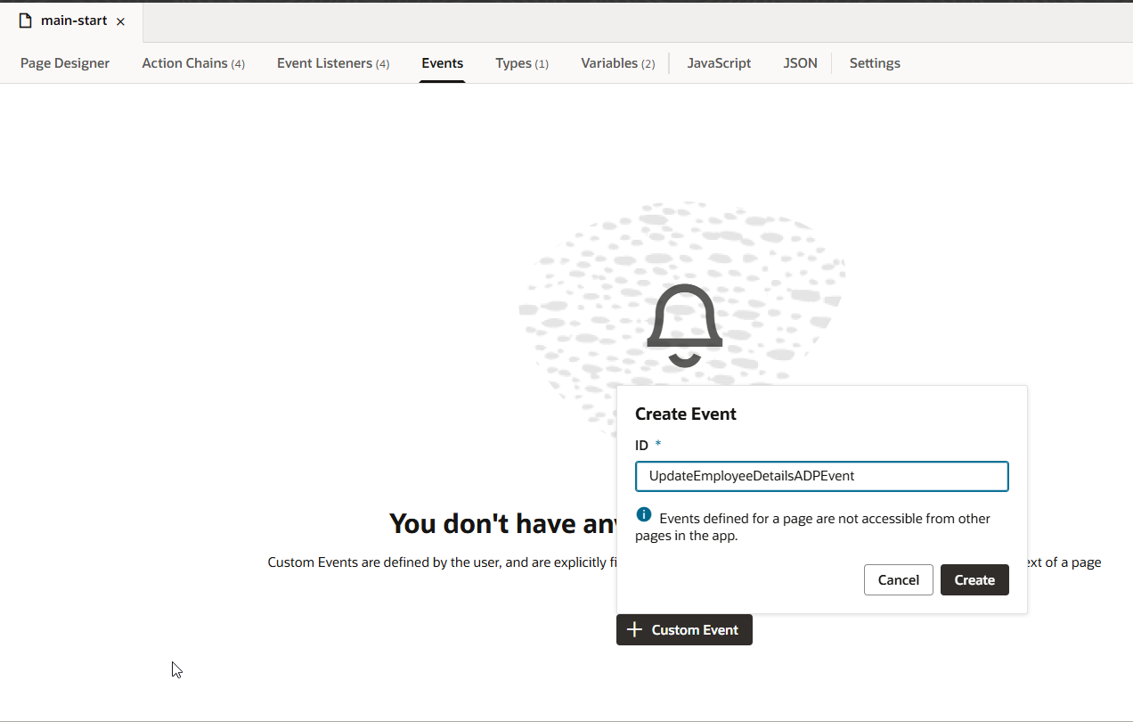To implement this, let us create new Custom event at page level.
