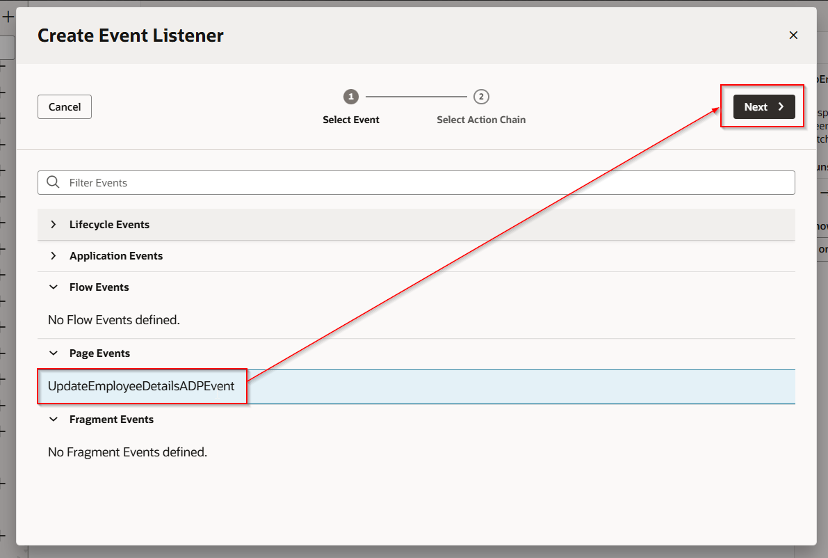 Select event which is created in earlier step and click Next.