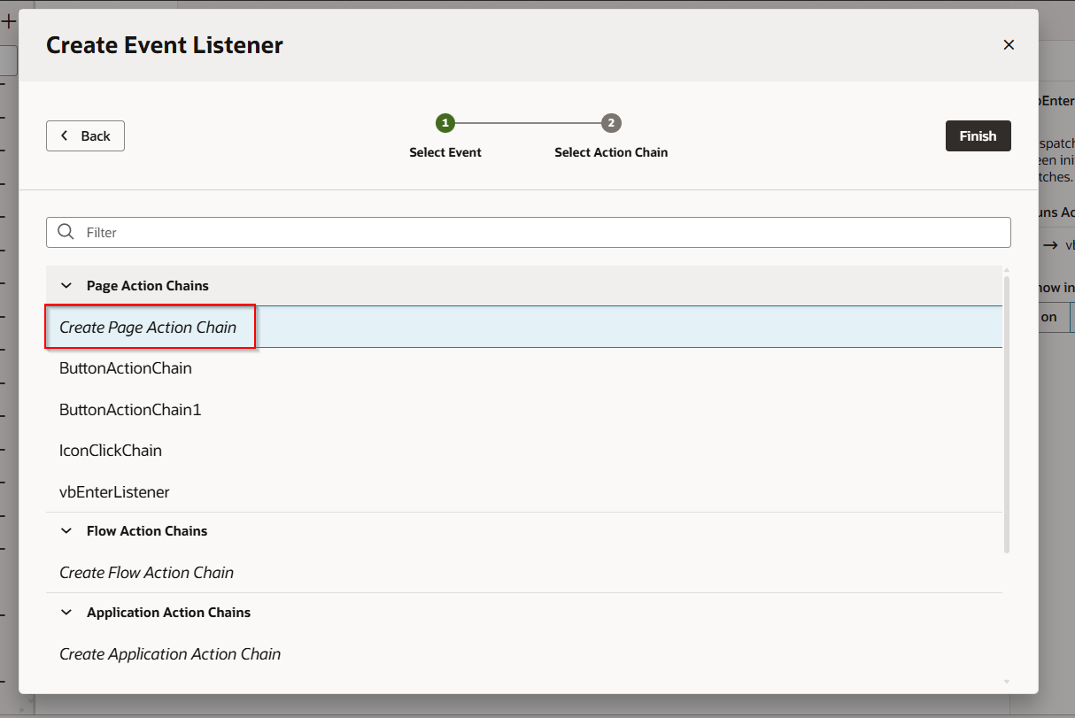 Select “Create Page Action Chain” and click Finish.