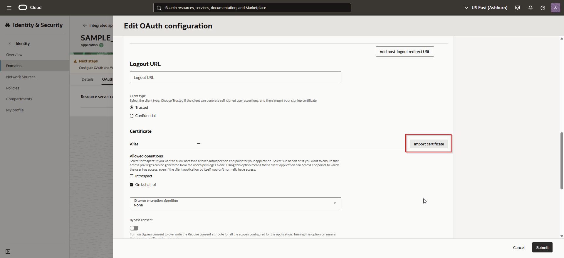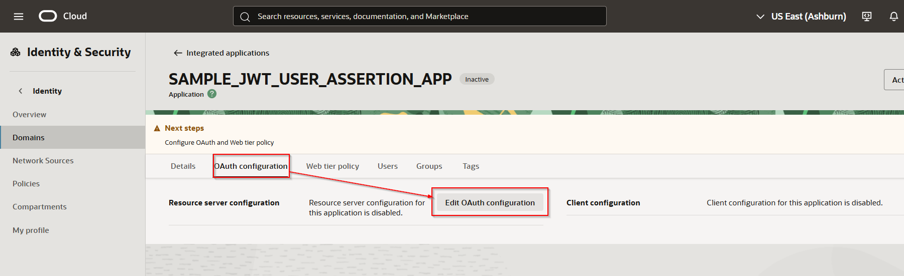 Navigate to OAuth configuration —>Edit OAuth configuration