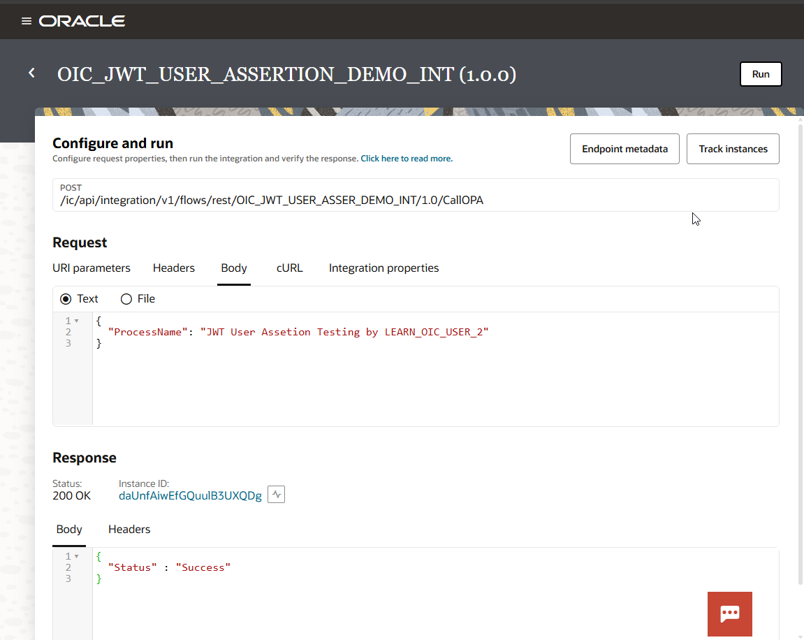 Login to OIC with LEARN_OIC_USER_2 and run the integration.